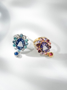 手描きの絵画とクリスタルを組み合わせたリング。