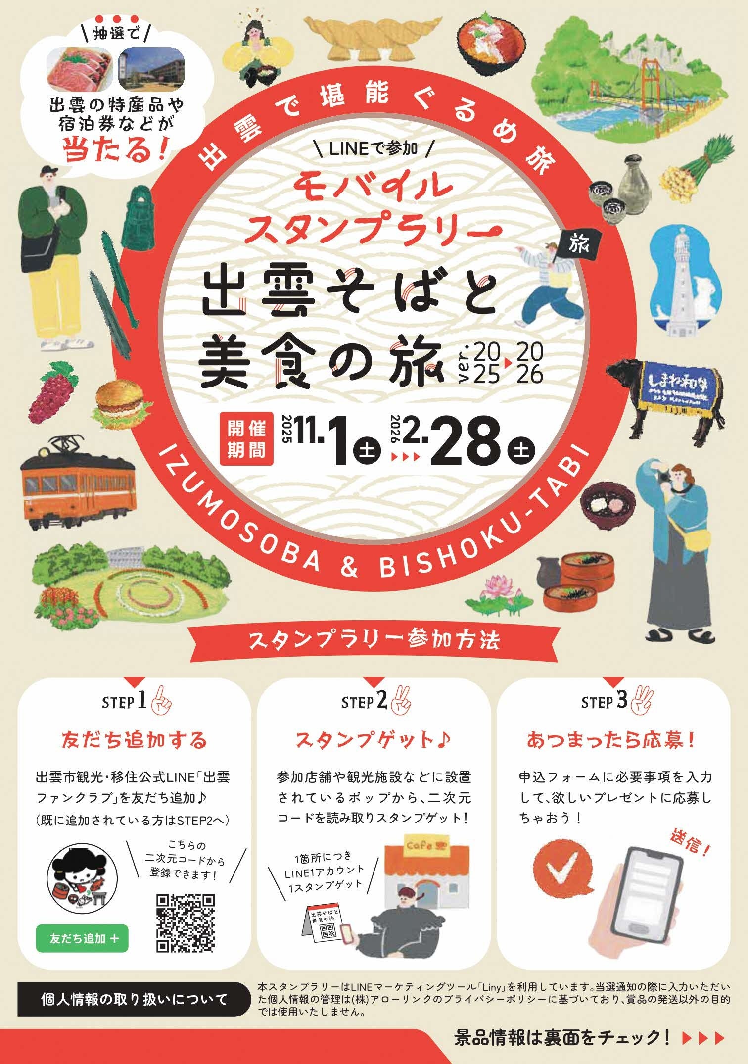 島根県出雲市―縁結びのまち・出雲で、 「出雲そばと美食の旅 モバイルスタンプラリー」 を、2025年11月1日(土)から2026年2月28日(土)まで開催します。