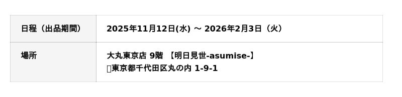 『永遠の美しさへの夢が、夢に終わらない未来を創りあげること』を使命に掲げる、化粧品の研究開発・製造販売を行う株式会社エテルナム(本社:東京都渋谷区、代表取締役:松本隆明)は、2025年11月12日(水) ~ 2026年2月3日(火) の期間中、大丸東京店9Fに店舗を構える複合型体験ストア 『明日見世』に出品いたします。アンバサダーからの丁寧な説明を受けながら、11月5日にリニューアルした「エテルナムスキンケア」を含む全商品を店頭でお試しいただけます。