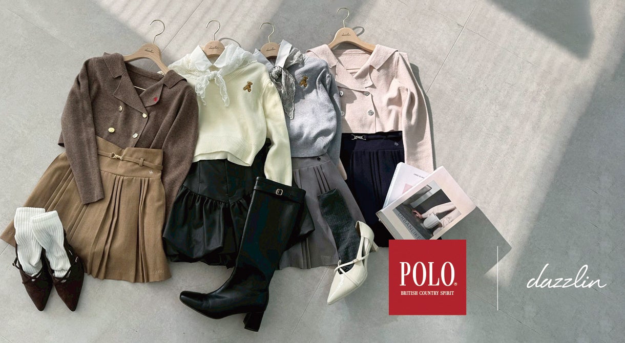本コラボレーションでは、POLO BCSが持つ端正で知的なクラシックスタイルと、dazzlinのフェミニンで洗練された世界観が絶妙に融合しました。