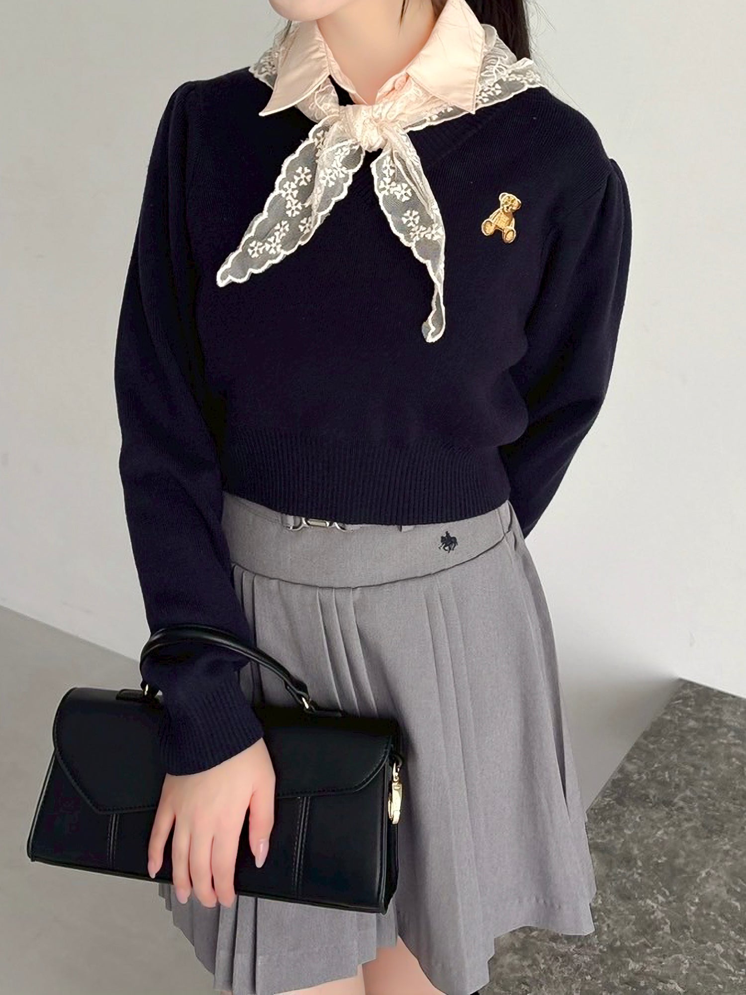 商品名:【POLO BCSコラボ】レーススカーフベア刺繍ニットトップス