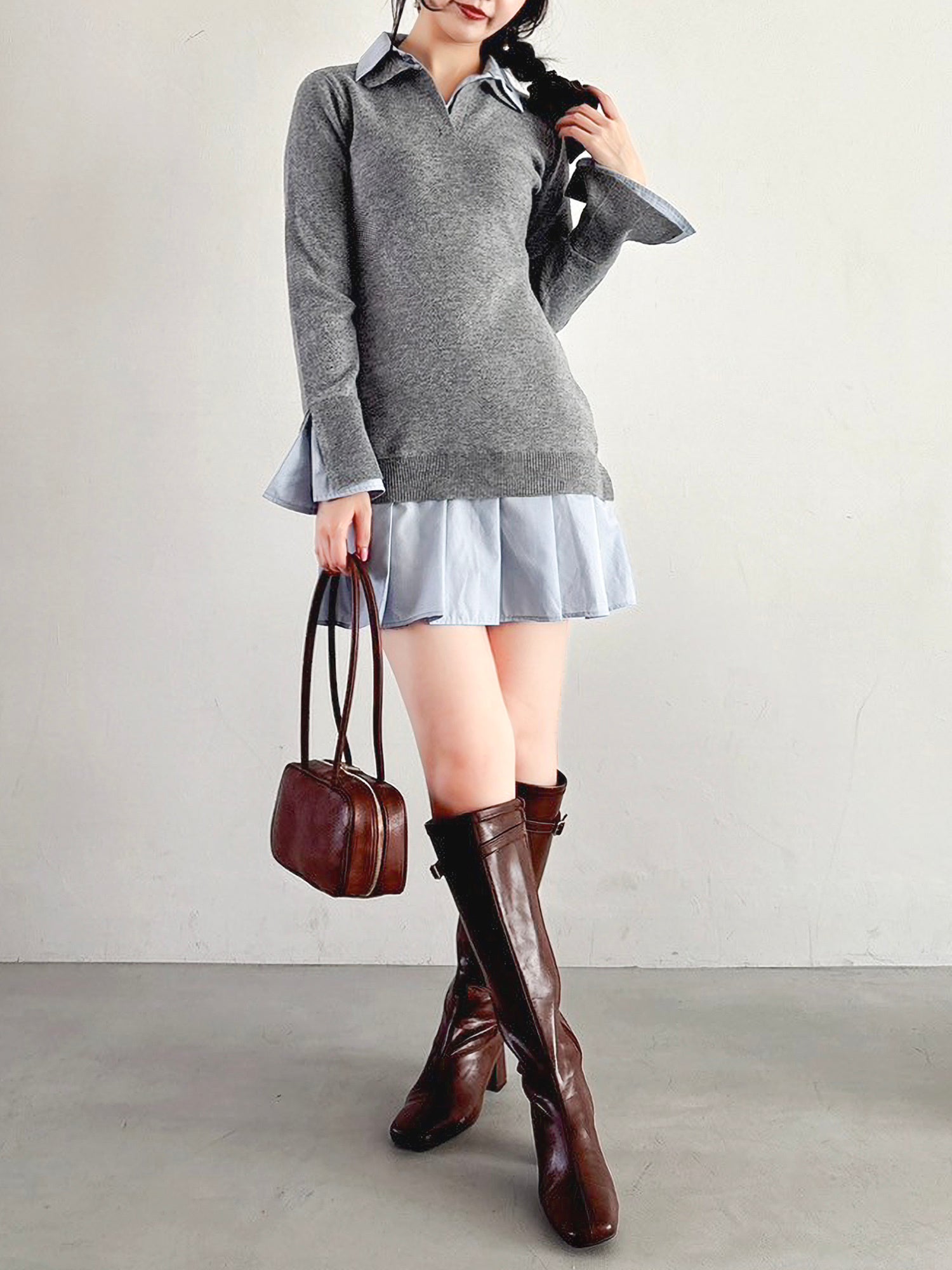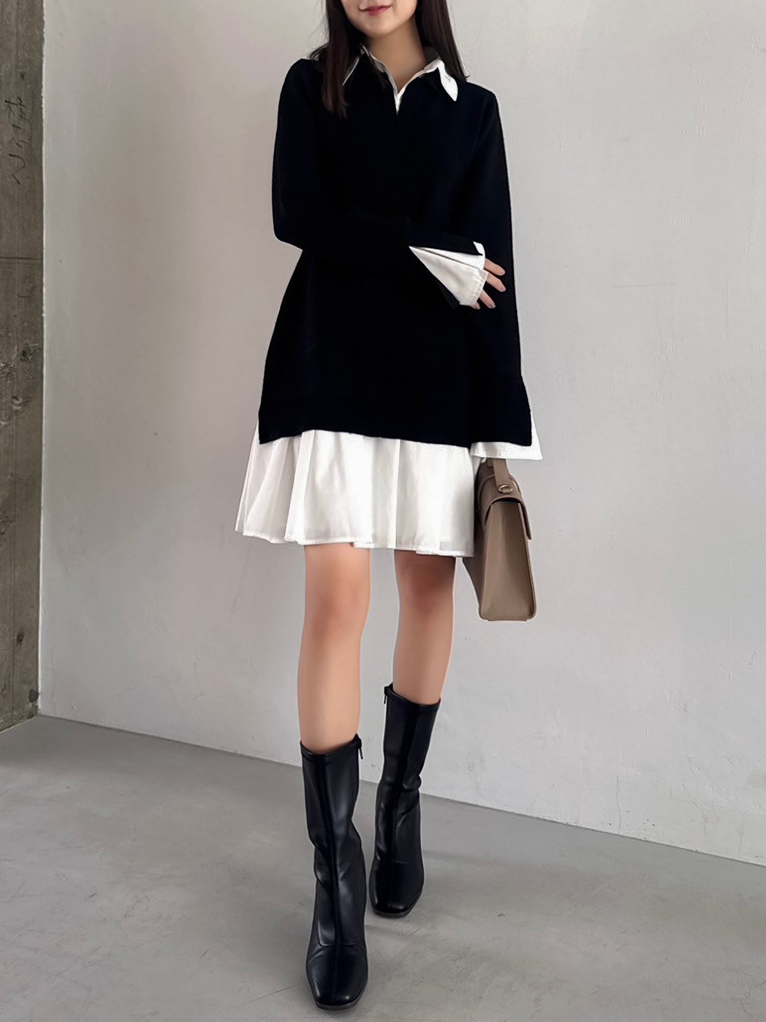 商品名:【POLO BCSコラボ】シャツレイヤードニットミニワンピース