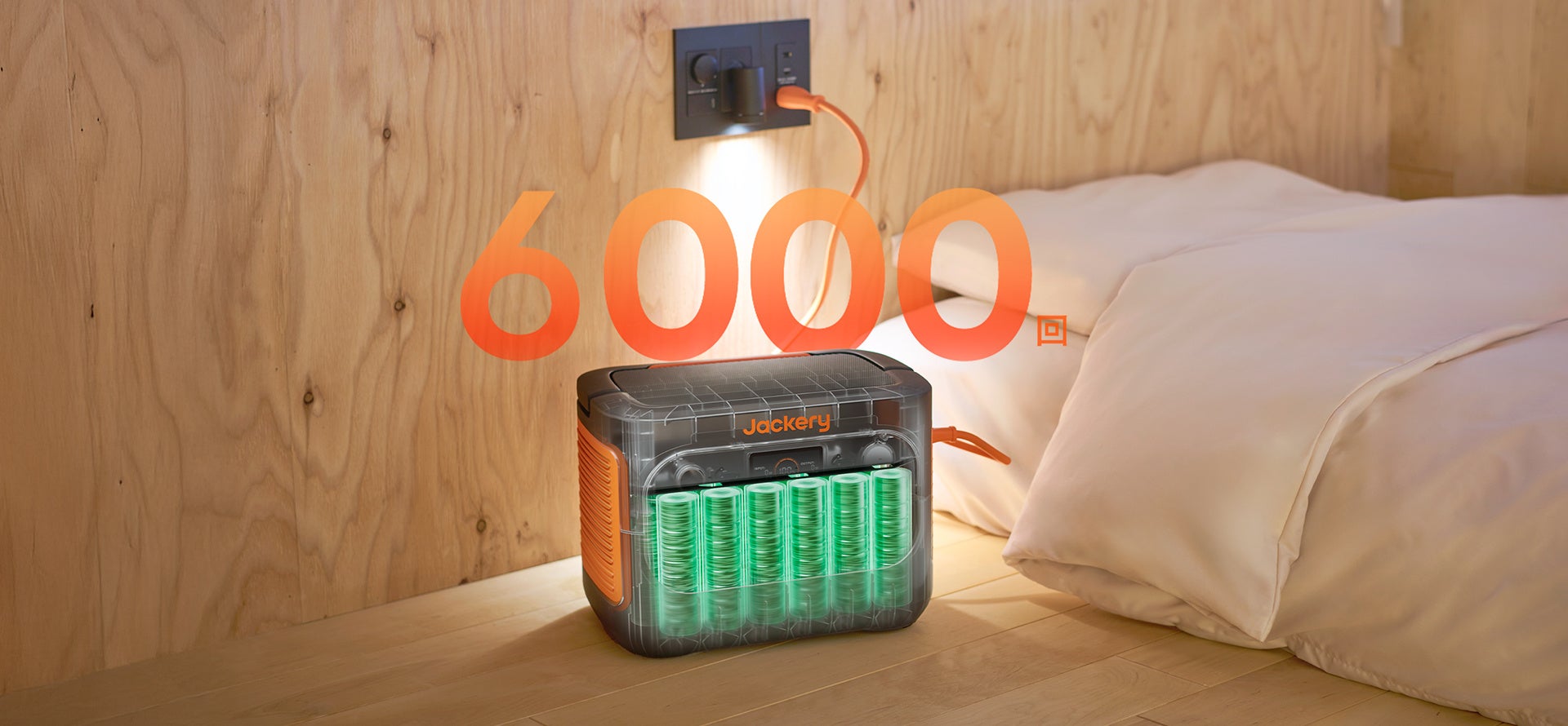 毎日充電しても10年間使用できる高耐久LFPバッテリーを採用し、バッテリーの充放電を繰り返し行える回数は業界平均よりトップクラスの6000回と長寿命を実現。6000回サイクル後もバッテリー容量の約70%を維持。災害時の備えとして安心です。