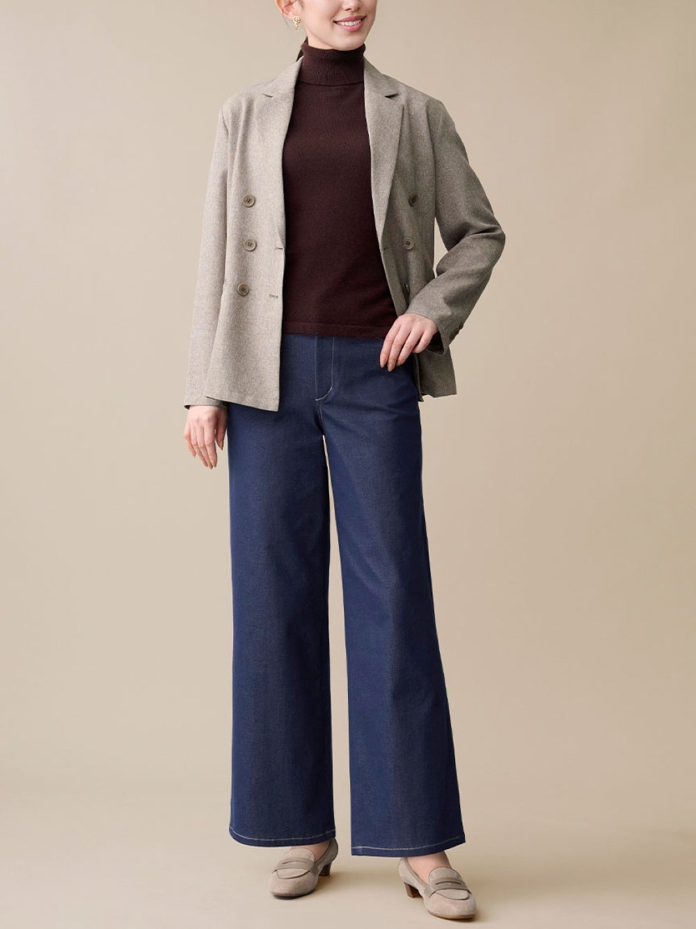 デニムなのにきれい見え。ストレッチが効いた楽ちんワイドパンツ■製品名:スムースジーンズ・ワイド