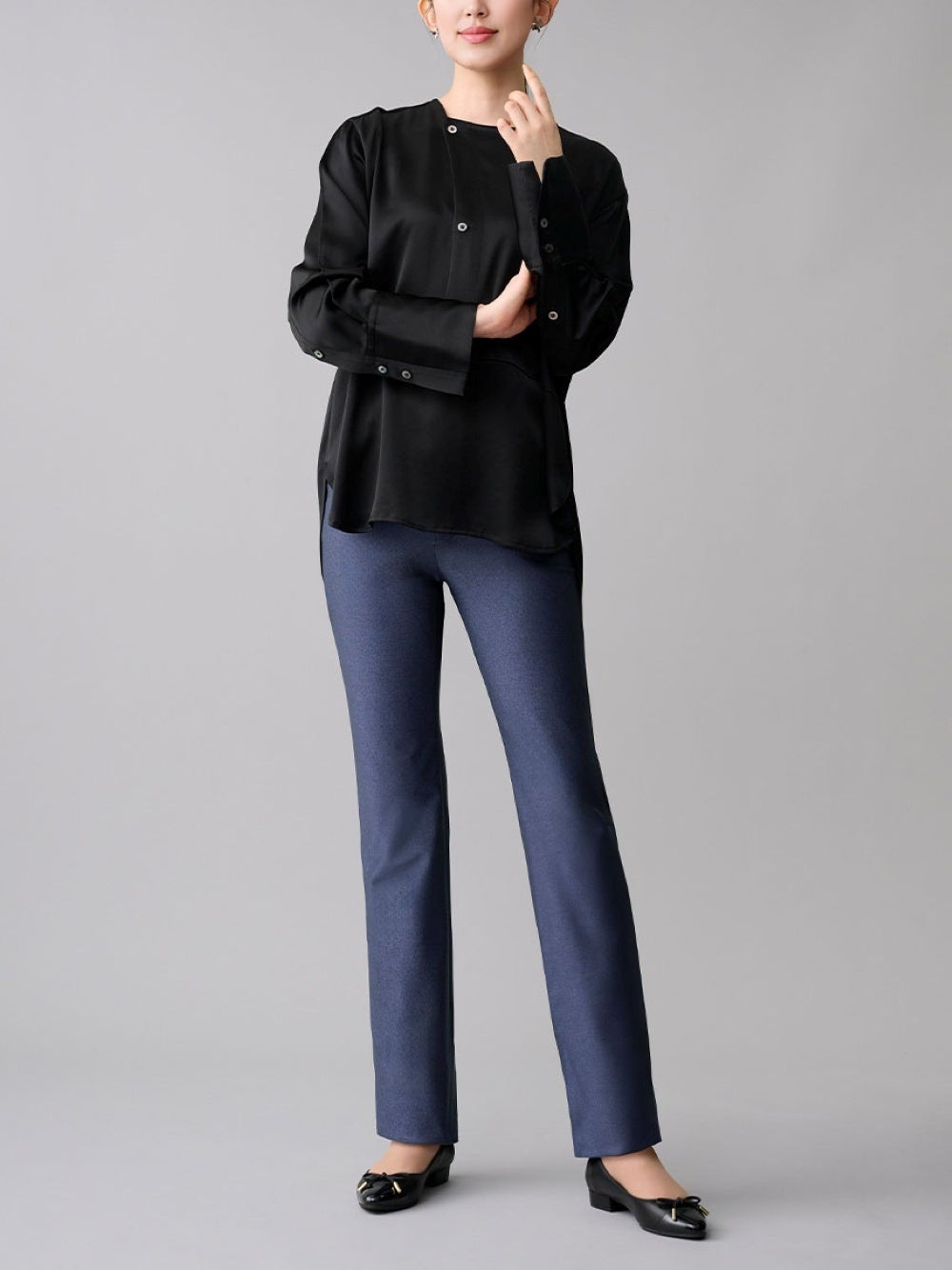 ”3Dメイクアップ加工”で美脚見え。ラグジュアリーな大人のストレートパンツ■製品名:シャイニーシャドウ・ストレート