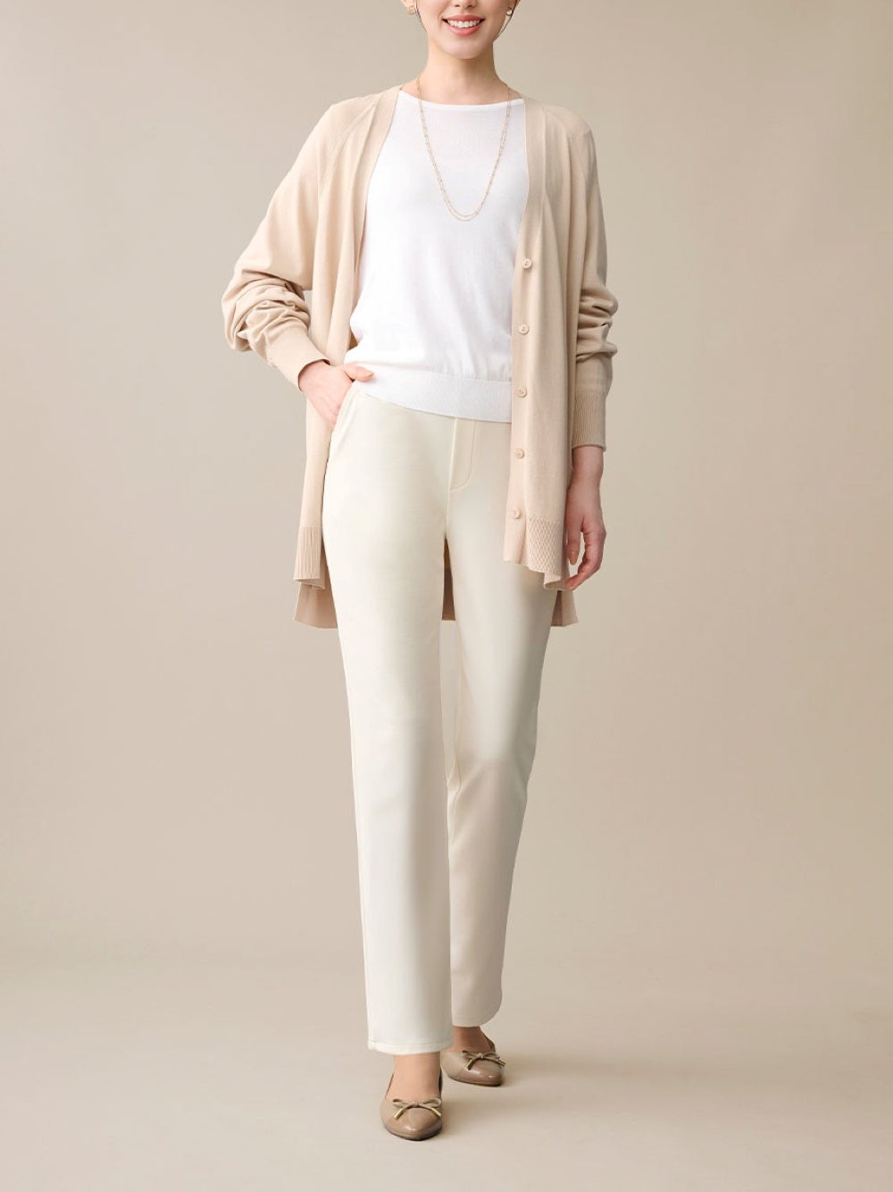 ペットの抜け毛や花粉が付きにくい。つるサラ新感覚で大人気のストレートパンツ■製品名:ケトレル・ストレート