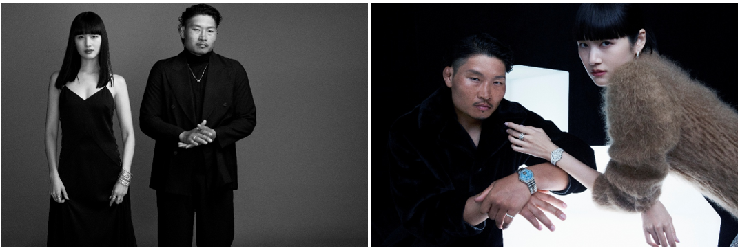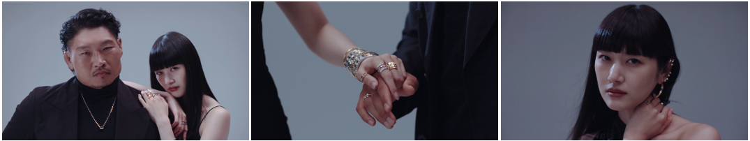 今回のヴィジュアルでは、ブラックを基調としたスタイリングにショパールのアイコン「アイスキューブ」ジュエリーとラグジュアリースポーツウォッチ「アルパイン イーグル」を呼応させ、ショパールが提案する“現代的なエレガンス”を視覚化。緊張感のある静謐な構図のなかに、静かに滲む佇まいを捉え、ファッションとしての夫妻の初共演を印象付ける、唯一無二の世界観を描きました。
