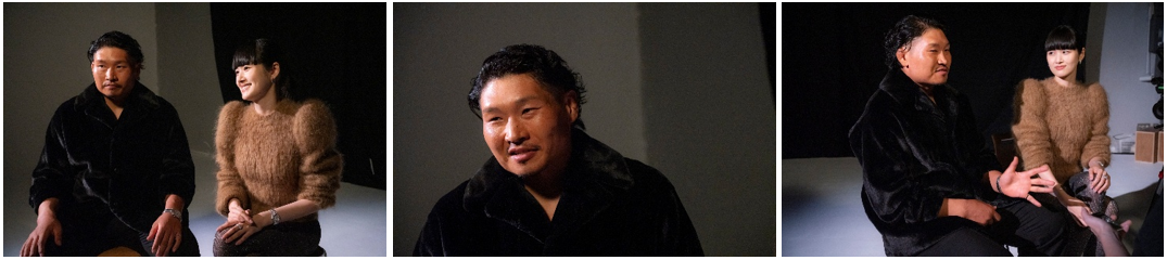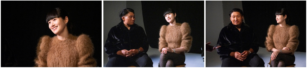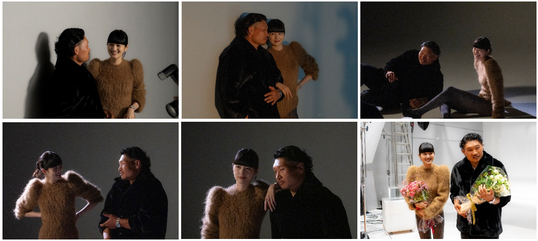 撮影中は一切の隙を見せないクールな表情で現場スタッフを圧倒していた両氏ですが、合間には、笑い声や柔らかな眼差しが交わされ、普段の素顔が垣間見える瞬間が収められています。静と動の交差こそが、メイキングならではの価値と捉えて写しとりました。