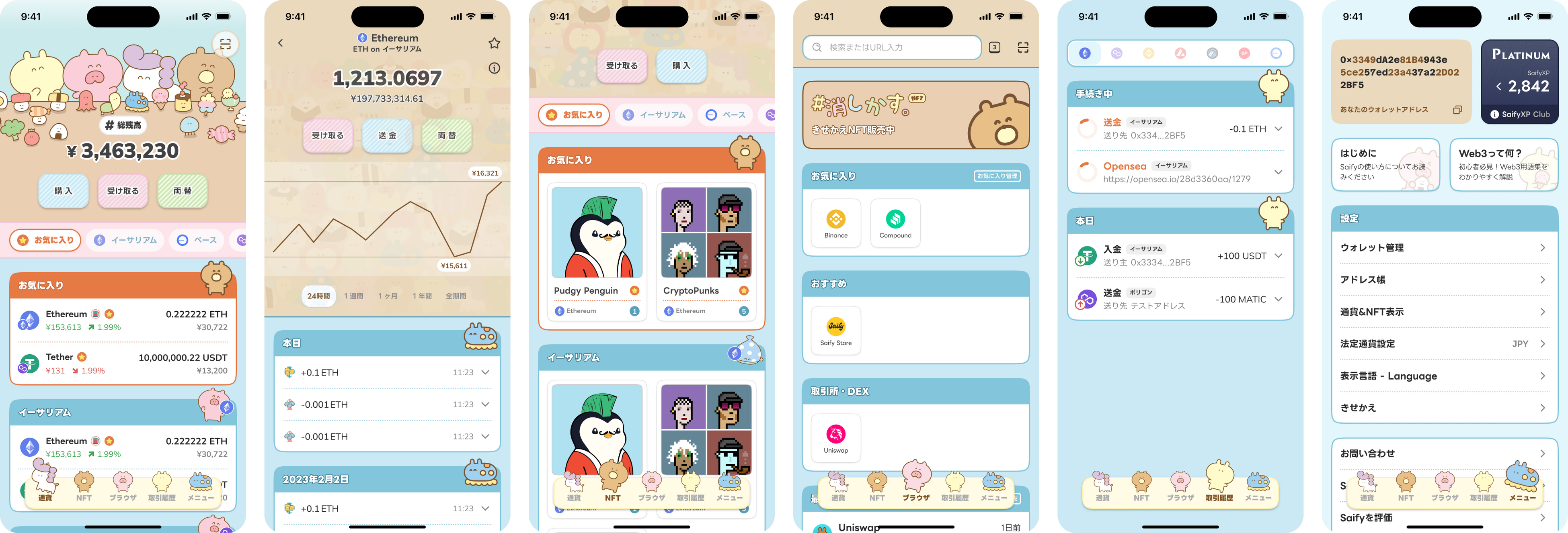 Saifyは「誰もが暗号資産に気軽に・安全に触れる環境を作る」をコンセプトに開発された、暗号資産のウォレットアプリです。初心者でも使いやすい、直感的なUIを実現しています。