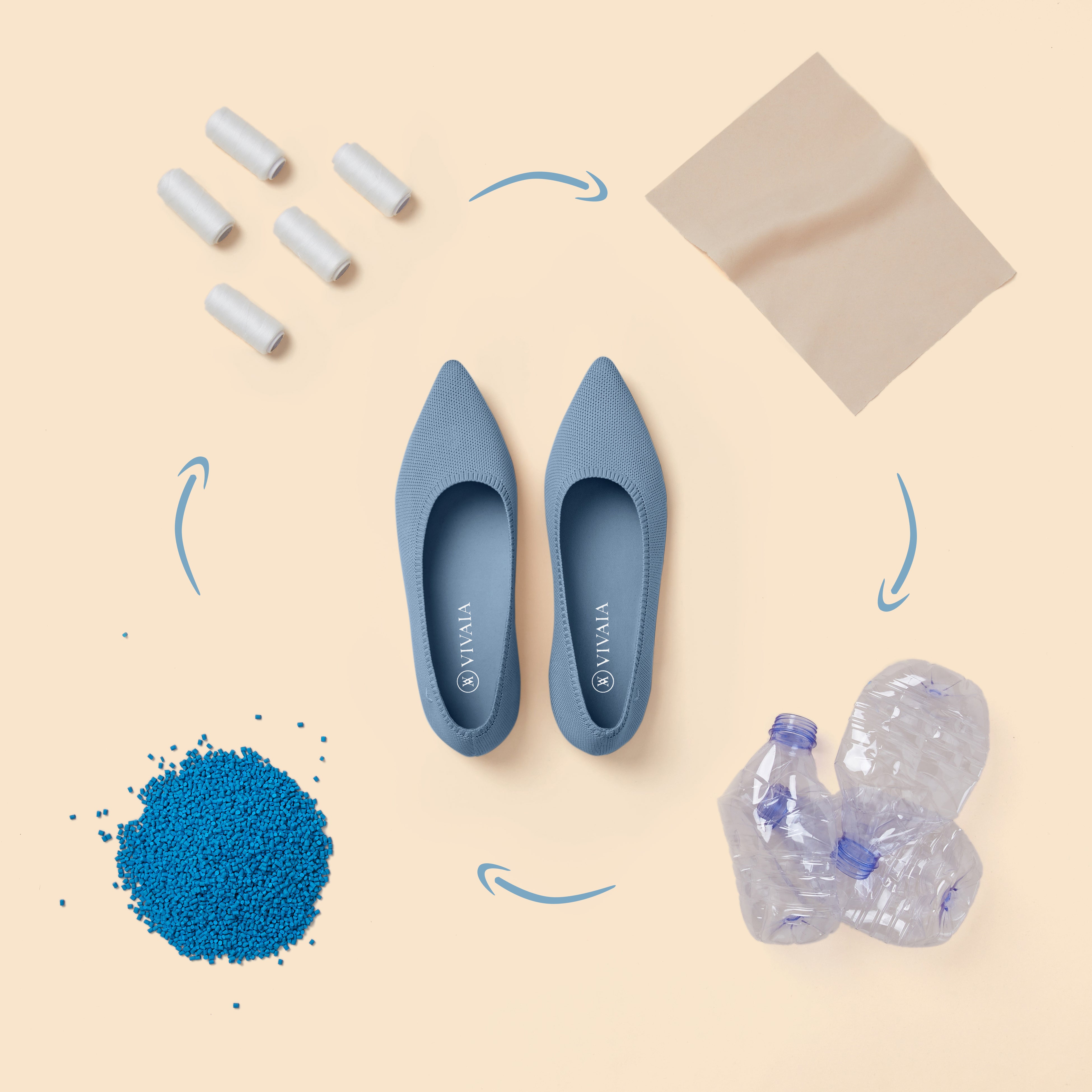 VIVAIAのデザイナーは常に最新のファッションに目を向け、トレンド感あふれるシューズを生み出します。既存の200以上のスタイルに加え、毎月新たなアイテムをWebサイトにて公開し続けています。独自のデザインを実現すべく、先進的な3D編み込み技術を用いて、リサイクルペットボトル由来の糸を、快適で耐久性の高い高品質の製品へと生まれ変わらせています。