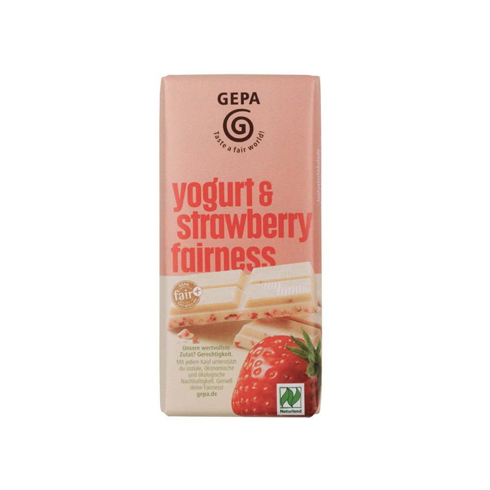ビオ ストロベリーホワイトチョコレート ストロベリーとヨーグルトの酸味が程よく効いた、爽やかな味わいのホワイトチョコレート。
