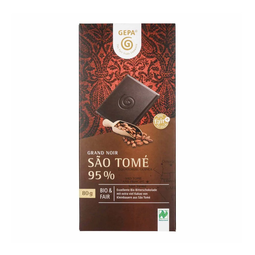 グランノワール ビオ ダークチョコレート 95%ゲパ社こだわりのプレミアムライン「グランノワールシリーズ」のカカオ分95%のダークチョコレート。カカオ本来の濃厚さと豊かな香り。赤ワインにも。