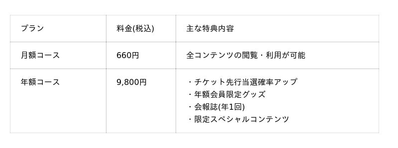年額コース限定の特典も新設し、ファンクラブとしての利便性と満足度を高めています。