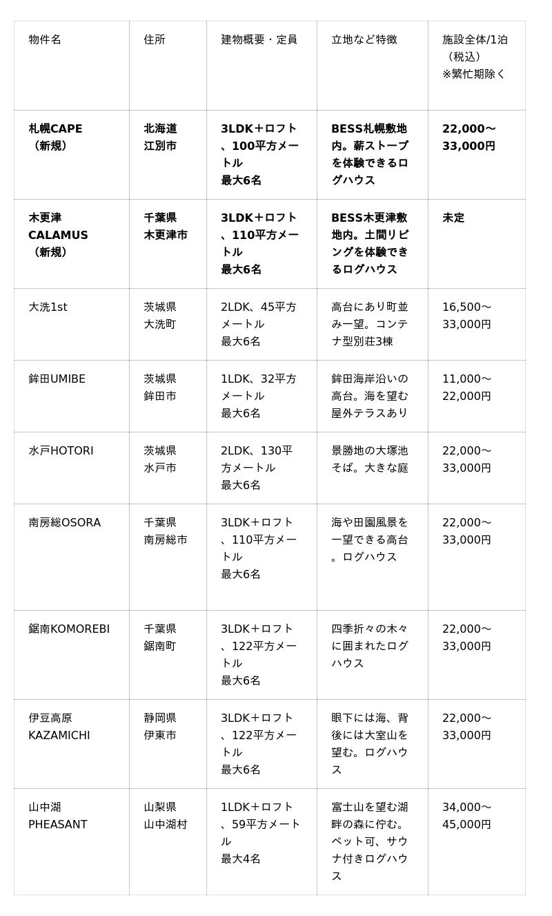 同年9月には、千葉県南房総市にあるログハウスを第1弾として「別荘レンタル事業」を開始しています。