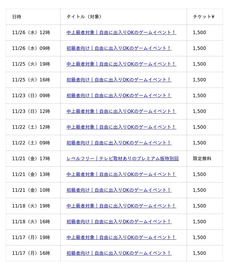 開催日前日16:00時点で参加者が0名の場合は中止となります