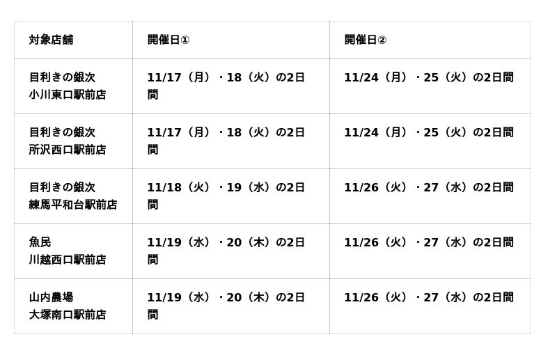 ・実施日は店舗により異なります。