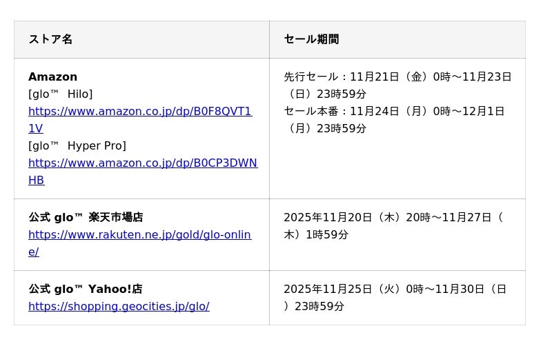 ■「glo(TM) Hilo」、「glo(TM) Hyper Pro」 ブラックフライデーセール詳細