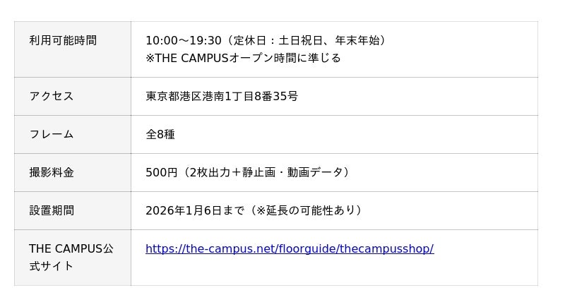 キタムラ・ホールディングス グループのピックハイブ株式会社(本社:東京都新宿区、代表取締役社長 兼 COO:大迫 由典)が運営するセルフフォトブランド「Photomatic(読み:フォトマティック)」は、コクヨ株式会社の東京品川オフィス「THE CAMPUS」(住所:東京都港区港南1丁目8番35号)にコクヨの新しいビジュアルアイデンティティがデザインされたオリジナルフレームで撮影できるフォトブースを設置しました。本取り組みは、「コクヨの新しいロゴをもっと身近に感じてほしい」という想いのもとスタート。新ロゴと5(コ)9(ク)4(ヨ)度「斜めのライン」からなるオリジナルフレームは全8種のバリエーションをご用意しました。オフィスで働く社員の方はもちろん、オフィスに来社された方や一般のお客様も撮影いただけます。ぜひお好きなカラーやデザインのフレームで、コクヨの新しい世界観の中で撮影をお楽しみください。