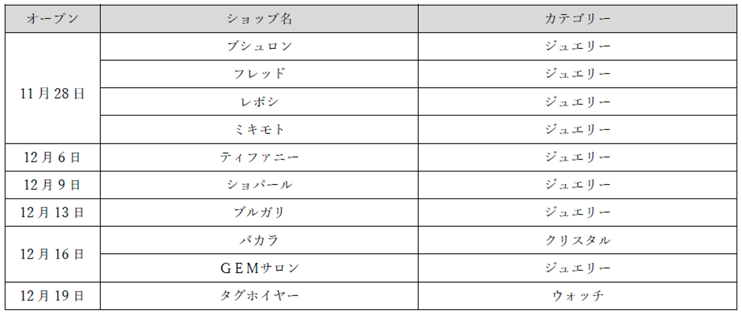 プレステージファッションからワールドクラスのジュエリーやウォッチまで、規模・内容ともにグレードを高め、ラグジュアリーを身近に楽しんでいただけるショップ揃えを実現してまいります。
