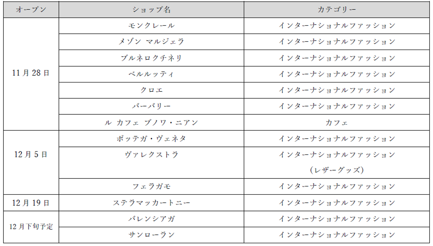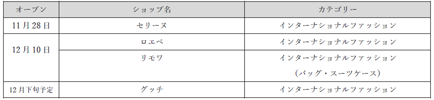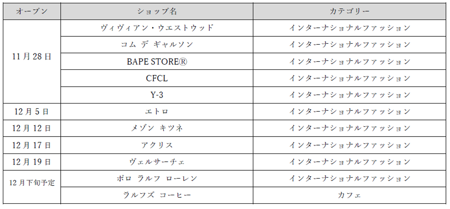 ■2025年11月~12月にオープンするショップ