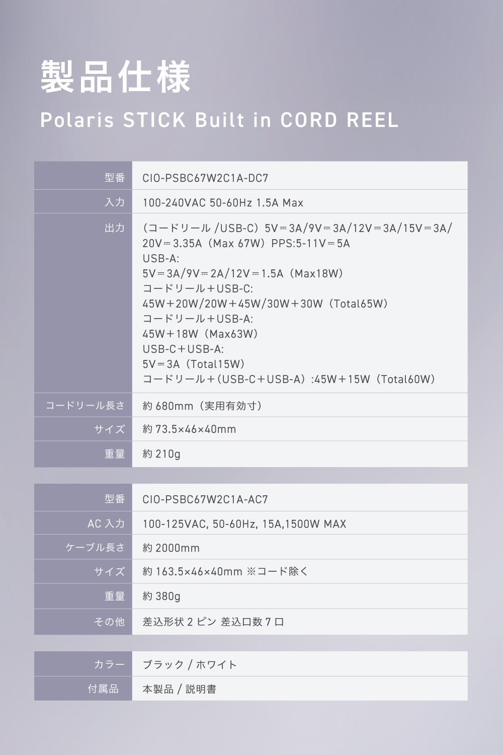 【株式会社CIO】 電源タップ・充電器・ケーブルを一体化した電源タップ『Polaris STICK Built in CORD REEL』を予約販売開始