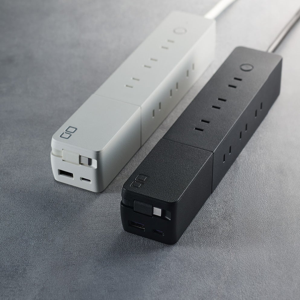 本体の端部は分離式になっており、単ポート最大67W出力に対応した充電器としても使用可能です。最長68cmのコードリールケーブルを内蔵し、必要な長さで使用でき、使い終われば自動で巻き取られてすっきり収納できます。ノートPCからタブレット、スマートフォンまで幅広く急速充電が可能です。2台同時に接続しても高出力を維持できるため、複数デバイス充電にも安心して利用できます。電源タップ機能と組み合わせることで、多様なシーンで効率的に充電を行えるのが特長です。
