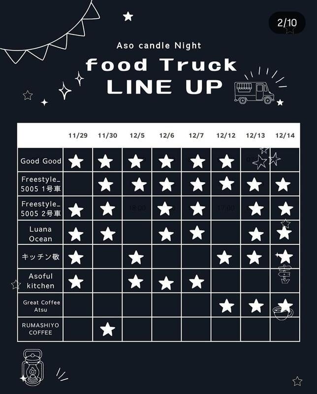 イベント開催日にはキッチンカーが出店いたします。(一覧の通り)