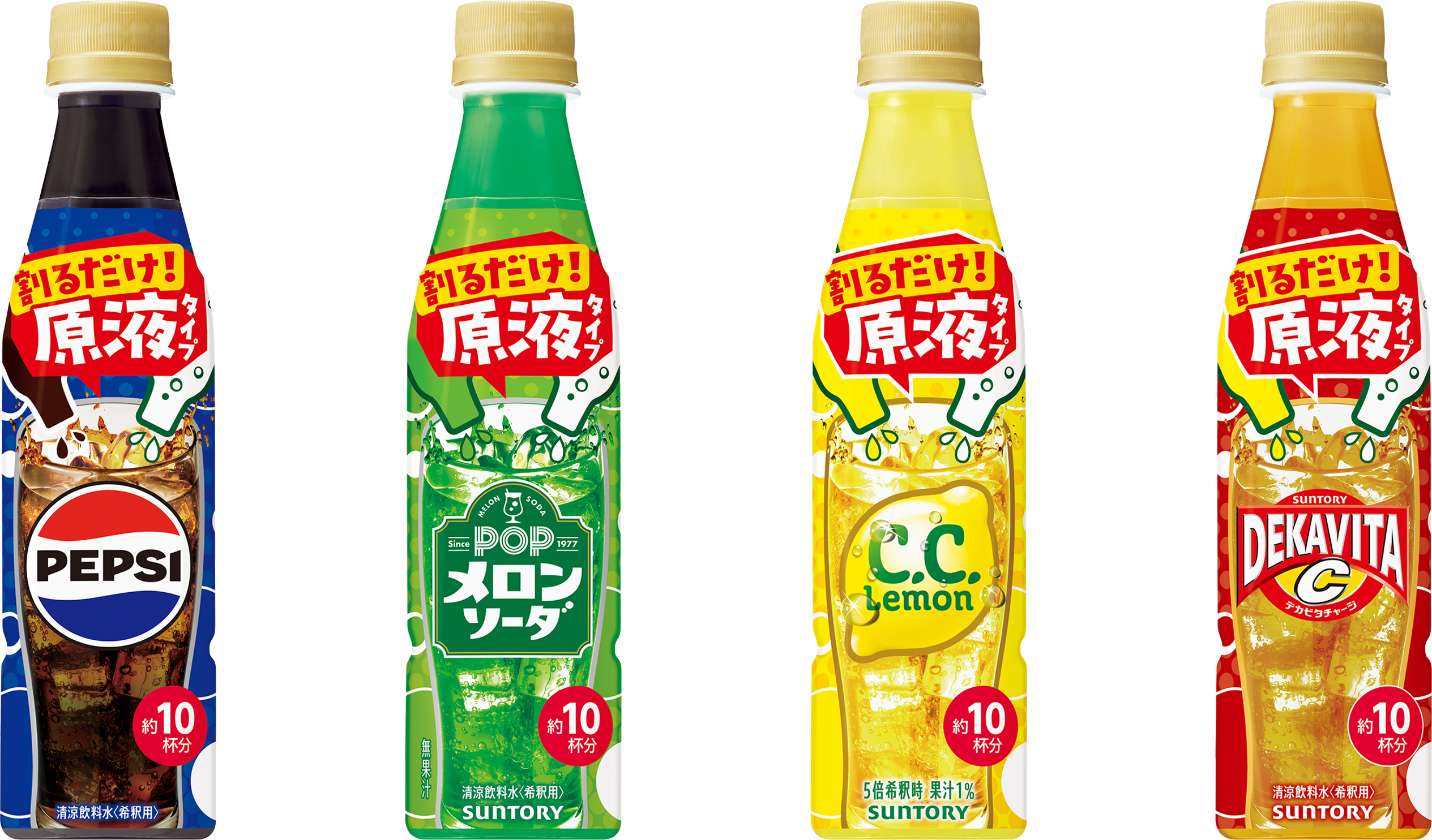 「ペプシコーラ」「POPメロンソーダ」「C.C.レモン」「デカビタC」4品と「すみっコぐらし」オリジナルラバーコースターがセットになっています。おうちドリンクバー1:炭酸水4で割ることで、簡単に美味しい炭酸飲料ができあがります。年末年始の家族の集まりや友達とのパーティーなどで、「おうちドリンクバー」のさまざまなアレンジをお楽しみください。