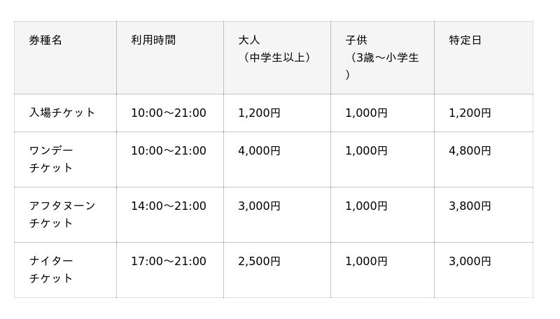 ※0~2歳までのお子さまは無料です。スノーパークもご利用いただけます。