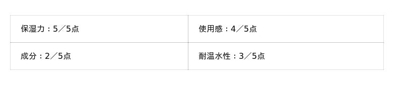 昨年ベストのコエンリッチも今回のラインナップで再テスト。高い保湿力、使用感、耐温水性に加え、充実したケア成分で今年もベストバイになりました