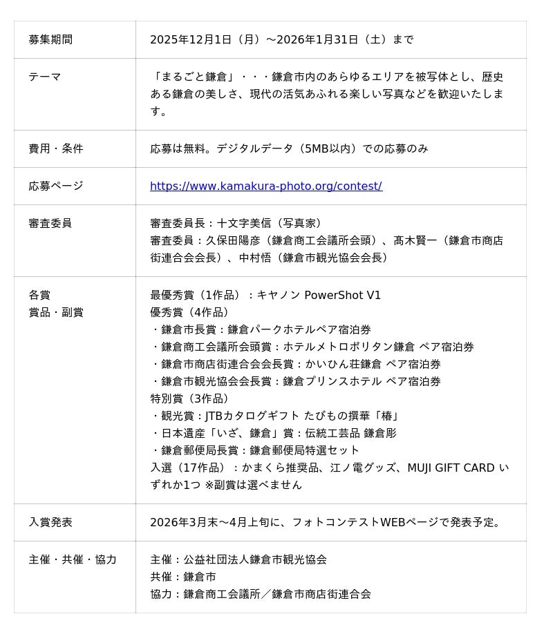 ■「鎌倉プロモーションフォトコンテスト2026」概要