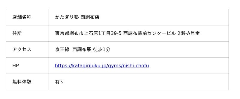 ▶︎https://katagirijuku.jp/gyms/nishi-chofu