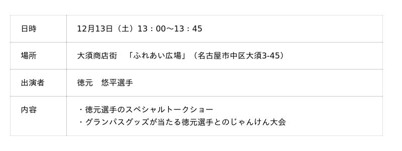 【名古屋グランパス】2025大須年末セール特別企画徳元 悠平選手 スペシャルトークショーおよびクラブグランパス来店イベント開催のお知らせ