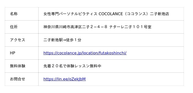 【二子新地駅 徒歩1分】女性専門パーソナルピラティス COCOLANCE(ココランス)二子新地店が2026年1月4日にオープン