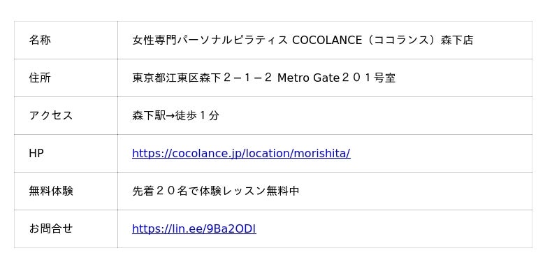 【森下駅 徒歩1分】女性専門パーソナルピラティス COCOLANCE(ココランス)森下店が2026年1月4日にオープン