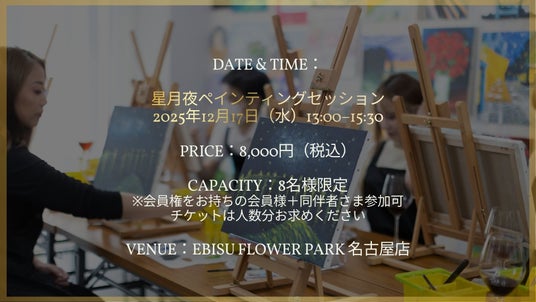 このたび、ART & WINE BAR NAGOYA様のご厚意により、EBISU FLOWER PARK 名古屋店にて、特別なアートペインティングイベントを開催できる運びとなりました。