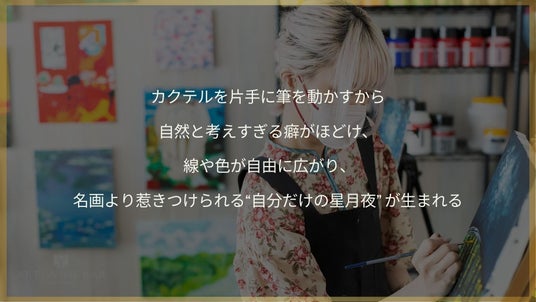 ワインやカクテルを味わいながら描くことで、思考のブロックが自然と外れ、“本物の名画より魅力的なあなたの星月夜” が生まれる瞬間をぜひお楽しみください。