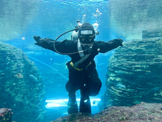 「うみがたり大水槽」に「忍者ダイバー」が出現し、魚にエサを与えます。