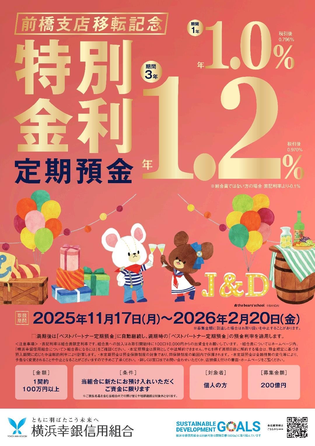 横浜幸銀信用組合(本店営業部:横浜市中区)は、約50年間前橋市古市町で親しまれてきた前橋支店を、2025年12月8日、同市下石倉町22-9に移転オープンいたします。