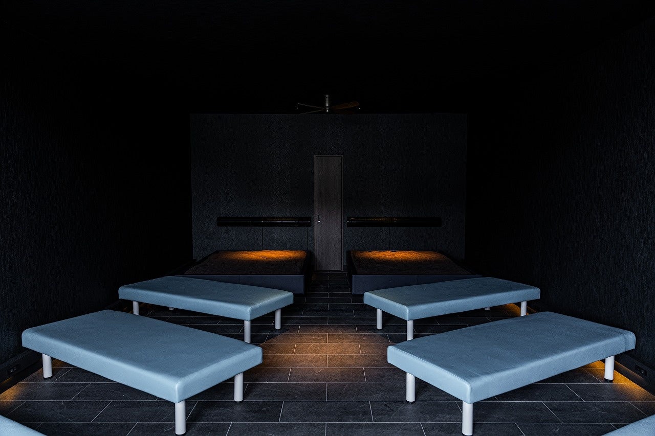 深海ルームは、深海の静けさを再現した暗がりの休憩空間。サウナ施設として日本初となるウォーターベッドを導入し、身体を水にゆだねながら海中に漂うような究極の内気浴が体感できます。