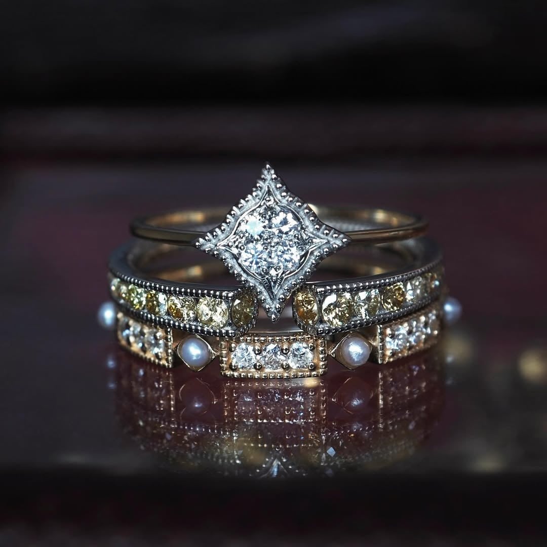 ダイヤモンドフォークリングをミルグレイン(上)とミルゴシック(下)で重ねたイメージ