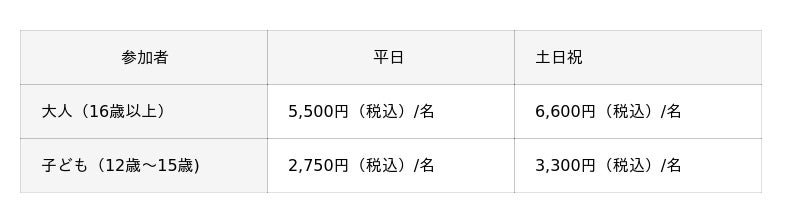 ※ 集合場所までの交通費は別途必要です。