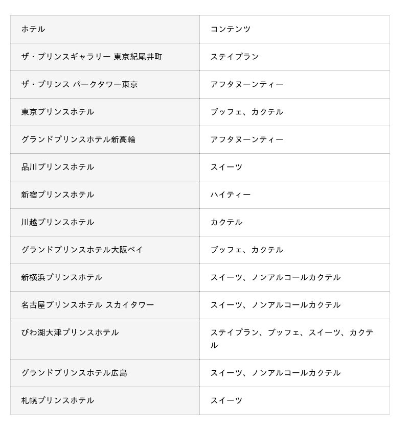 ※グランドプリンスホテル大阪ベイ、びわ湖大津プリンスホテルの表記料金には、消費税・サービス料が含まれております。