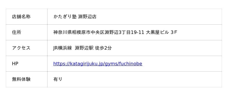 ▶︎https://katagirijuku.jp/gyms/fuchinobe