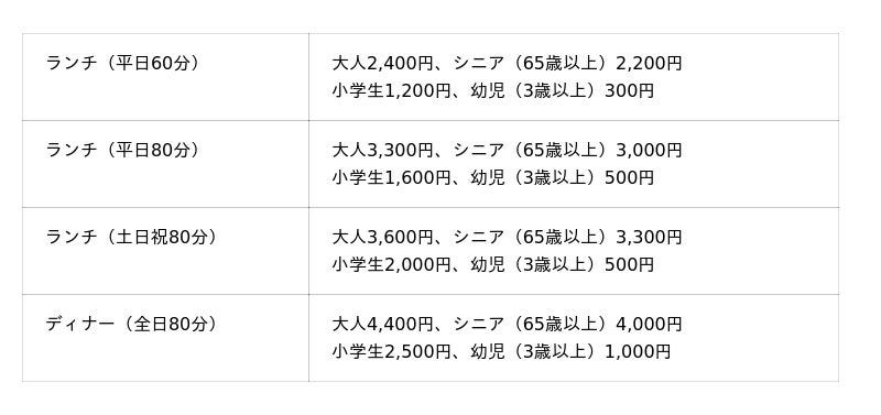 大人+600円、小学生+300円、未就学児・幼児 無料