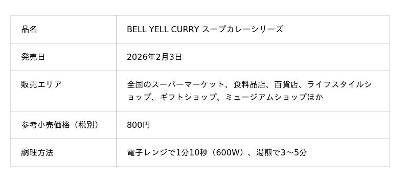 日本で初めて固形カレールウを製品化したベル食品工業株式会社(大阪府)から、オリジナルブランド「BELL YELL CURRY」(ベルエールカレー)のレトルトスープカレーシリーズ3種を新発売します。あわせて東京インターナショナル ギフト・ショー春2026に出展いたします。