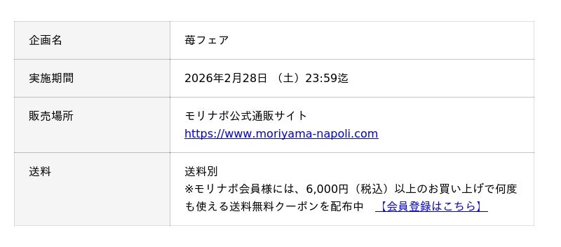 金沢発の冷凍ピザブランド「モリナポ」(製造・販売 株式会社森山ナポリ:石川県金沢市三池町)は、人気が高い3種の苺をそれぞれ主役にした「苺フェア」を、2026年2月28日(土)まで期間限定で開催中です。