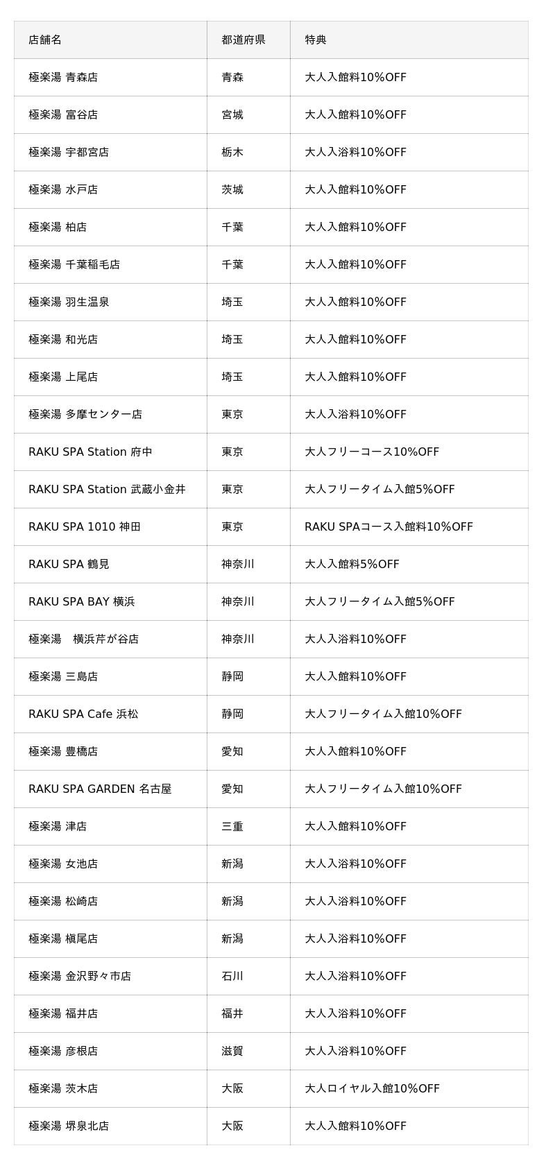 極楽湯・RAKU SPA直営29店舗