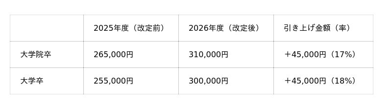 1.新卒初任給の引き上げ(実施時期:2026年4月)