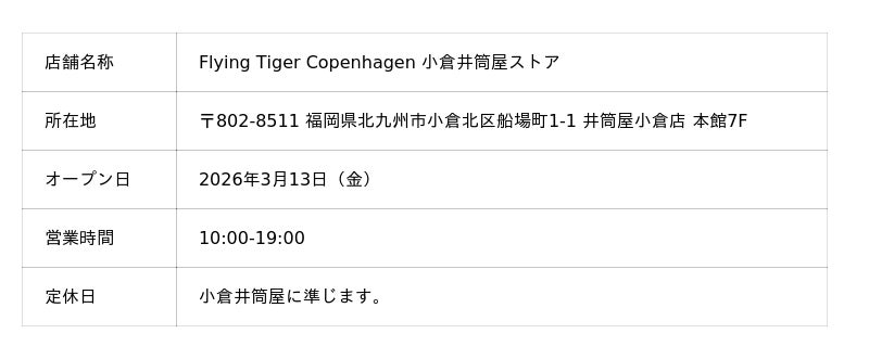 フライングタイガーは、過去2024年・2025年(~2026年2月15日(日)終了)の2回、小倉井筒屋にてPOP UP STOREを開催してきました。その中で、ご利用いただいたお客様をはじめ、多くの方から常設店舗化のご要望いただき、今回ご縁があり、出店に至りました。なお、〈小倉井筒屋ストア〉は、フライングタイガーとして北九州エリア初の店舗となります。